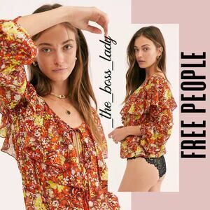 Free People bodysuit floral ruffled long sleeve bell sleeve polka dot chiffon