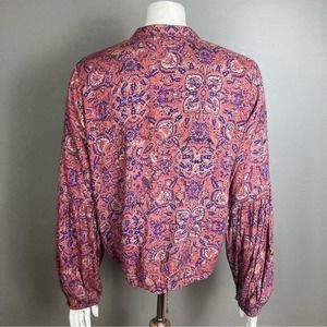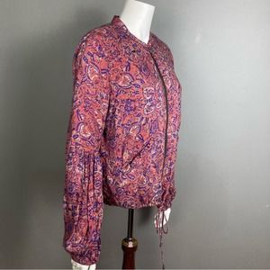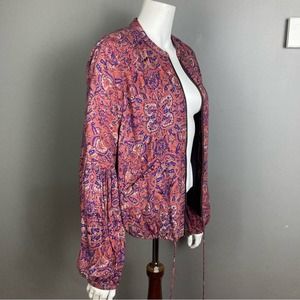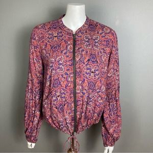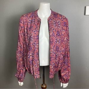 Free People bomber jacket lightweight pink blue mosaic pattern small