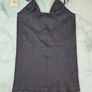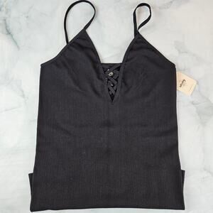 Long ribbed black tank top w criss cross neckline yellow lacy bra bralette bandeau crop top. Black tank is new with tag, and bandeau is new without tag!