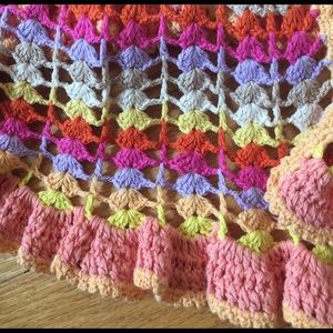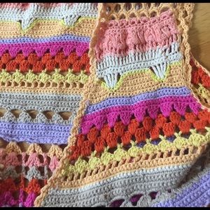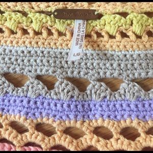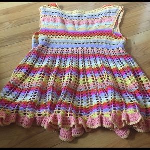 Feminine funky and colorful! Cotton knit long vest with flirty skirt. Stripes of peach, yellow, pink, lavender, red, beige, cream, and everything in between