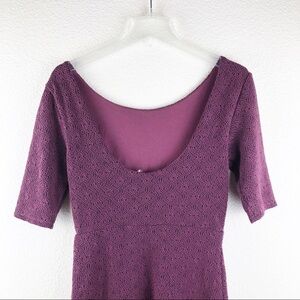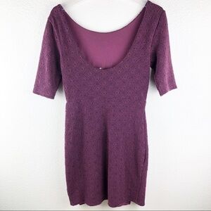 Free People burgundy bodycon dress size medium! Really nice material stretches. It has nice open back design with mid sleeves. Perfect for dressy outfit fits above the knee.