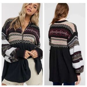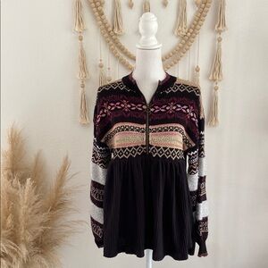 Free People cabin fever thermal sweater knit metallic silver gold winter vibes S