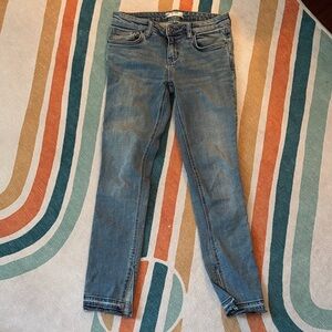 Free People classic skinny blue jeans with slits at the bottom, these jeans have some stretch to them, comfy, from pet & smoke free home, EUC