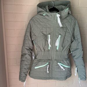Free People coat ski jacket thumb holes sage green quilted hoodie NEW xs