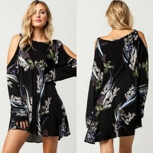 Free People cold shoulder asymmetric mini dress Floral Black Dress