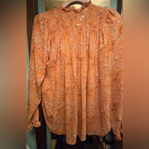 Front button floral blouse with smocking at the shoulder and functional button front. Clean with no flaw (no rips, tears, or stains.) ready to ship from a smoke free home in 1-2 business days.