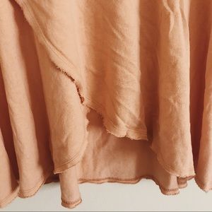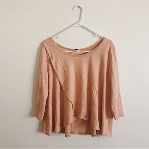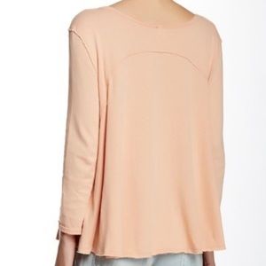 free people boatneck coral top with wrap front detail and raw cut edges