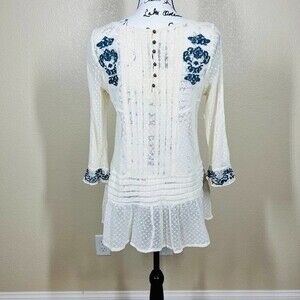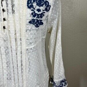 Pre-loved Free People women top Jocelyn Boho Lace Embroidered Pleated Bell Sleeves Top M