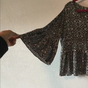 Super cute free people tee shirt when wearing jeans it comes to right too your jeans. Flare sleeves and super comfy.