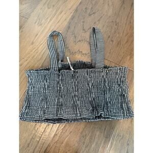 Free People black & white gingham cropped top with ruching. Excellent condition. Size medium. Poly rayon and spandex
