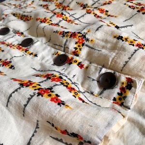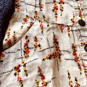 Like new 🌼🌾 Linen material with pockets and beautiful floral pattern. For size reference in photos, I’m 5’9 (the medium is a little big on me. I’m a 27 jean size)
