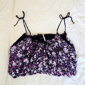 Free People daisy babe halter tank top purple floral crop top xs tie