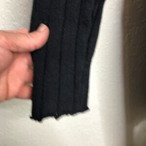 Free People dark blue ribbed linen blend long cardigan. Full open front. Wide ribbed knit. Side slit hemline. Long length. Size Large. Excellent preowned condition. Minor wash wear.