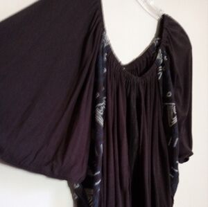 Free People draped faded black blouse with elastic neckline and drawstring waist