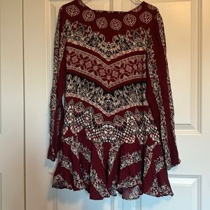 Free People dress long sleeve open back boho mini dress size Medium