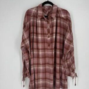 Free People dress medium M pink plaid zoey mini western boho festival oversized