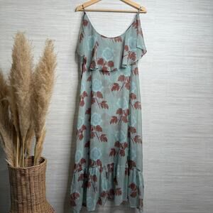 Free People dress or maxi top floral sheer slip ruffled strappy slit boho Medium