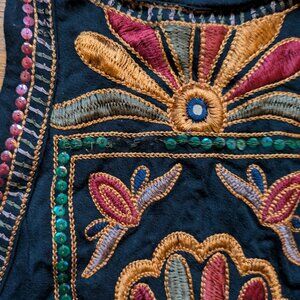 Free People sleeveless embroidered tunic. It is used. It is missing a few of the sequins on the front. Please see photo