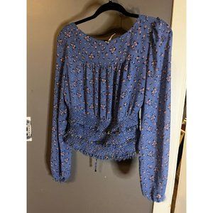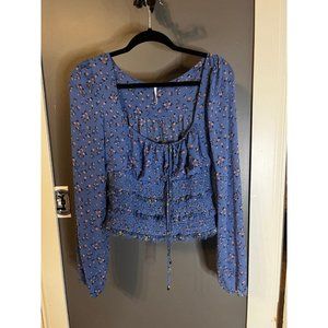 Free People size large blue floral blouse perfect for spring. Easy to style and perfect with jeans. Excellent used condition. Please feel free to look at my other listings for bundles.