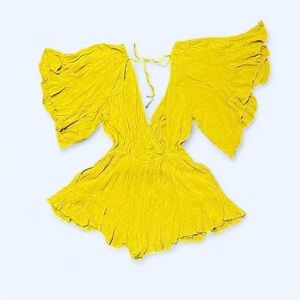 Free People flowy romper with back adjustable string w/copper detail, side pockets and low back.