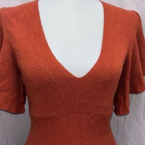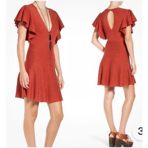Free People flutter sleeve flare Knit dress XS rusty red brown