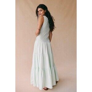 Free People free-est Natural Sterling Maxi Dress Smocked Tiered Mint XS 282879