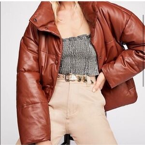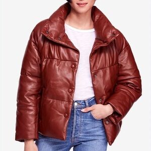 Free People genuine leather Quilted Bomber Snap Puffer coat NEW