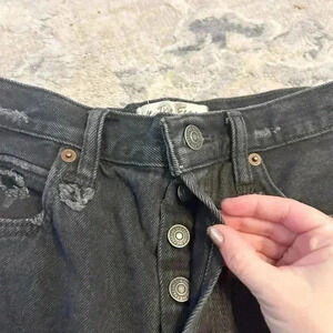 Free people dark gray black distressed high waisted shorts. Button fly. Size 25. Excellent used condition