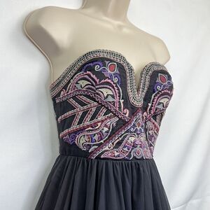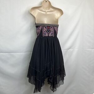 Free People gray embroidered strapless event dress size O