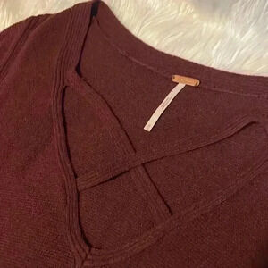 Free People darling sweater to pair with leggings, jeans or wear by itself! Straight fitted design with cross cross neckline and sexy side slits.
