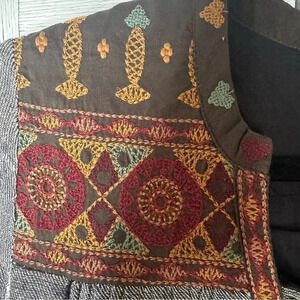 Free People hippie boho embroidered tunic dress tassels ties long sleeve gray & Burgundy, some pulling up the sleeves see pictures has pockets grunge in good condition