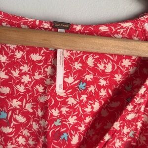 Flirty and floral, this Free People dress is full of flower power vibes. The perfect dress to wear out to brunch or to the farmers market. Featuring a swingy silhouette, plunging neckline, flared short sleeves and smocked elastic at waist.