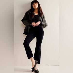 Free People in My Feelings Cropped Bootcut Corduroy Pants Black Women's SZ L NWT