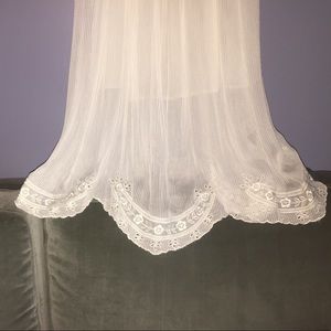 Free People New Romantics Captured Sunshine Dress. Sheer, mid-length halter with lace and embroidered detail on front bodice. Scalloped bottom edge. Length is 45.5", bust (around) 24", waist 27". Never worn, tags attached. Will consider reasonable offers.