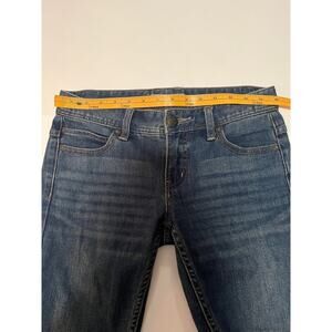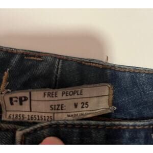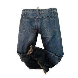 Free people mid rise jeans skinny leg jeans. Distressed style with frayed bottom and holes in knees. In excellent condition. No signs of thinning fabric or wear. Size 2 or 25.