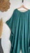 Boat neckline, draped dolman sleeves, banded hemlines, back button closure