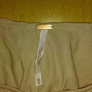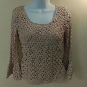 Free people s/p knit long sleeve tan blouse. The sleeves have a bell bottom look. Pre-owned in gently used condition.
