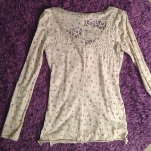 Floral knit top with lace panels on the back and backseam. Front buttons are functional.