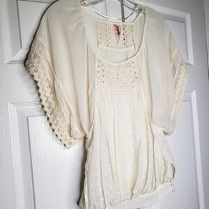 Free People lace crocheted sheer cream blouse size XS.