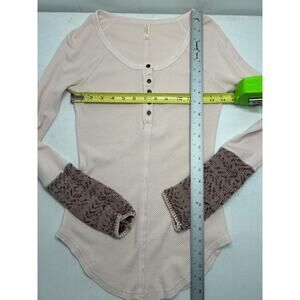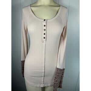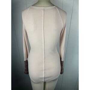 Free People light pink Newbie ski lodge Newbie crochet cuffs thermal Shirt Sz S