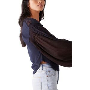 Free People light Magic Navy Blue henley Top NWT sz. Medium