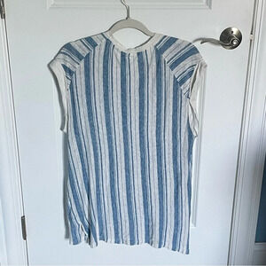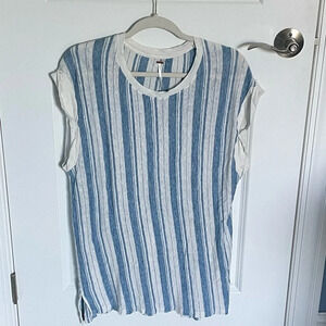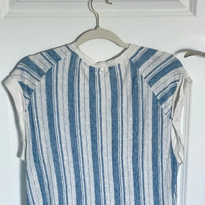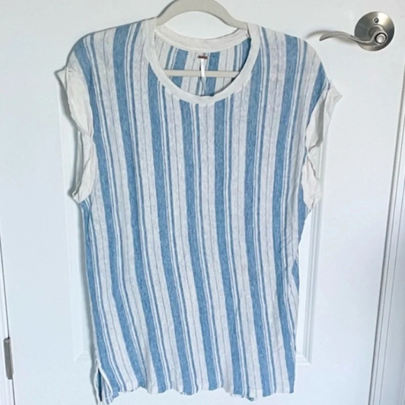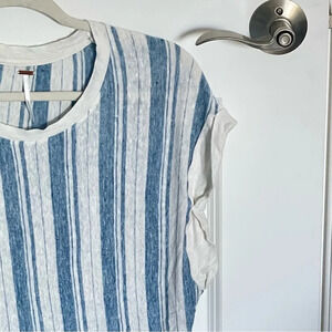 Free People linen striped muscle tank top sleeveless shirt blue 29783