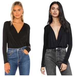 Free People long sleeve black bodysuit, slouch neckline, long sleeves, size Med