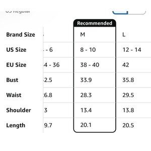 Bust = 33.9", Waist = 28.3", Shoulder = 13.4", Length = 20.1"