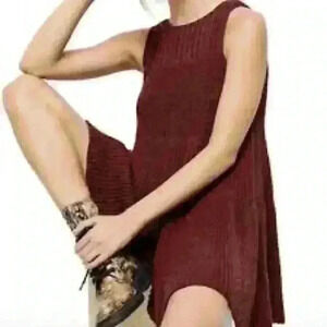Free people burgundy maroon knit sleeveless relaxed casual oversized waterfall dress with slip.