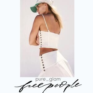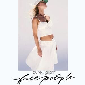 Elevate your bohemian style with this stunning Free People co-ord set, featuring a crop top and midi skirt in a matching pleated design. This Free-est collection ensemble is perfect for creating a chic and effortless look.