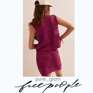 Elevate your wardrobe with this charming Free People set! This delightful co-ord includes a crochet knit top and a matching mini skirt, perfect for a stylish and coordinated look.