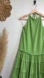 Soft cotton fabrication, halter-neckline with adjustable tie, low open-back with adjustable tie at the back of the waist, drop-waist detail, tiered skirt