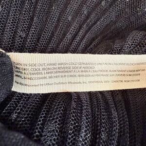 Sheer swiss-dot mesh, shirred waistband, tiered ruffles, adjustable ruching at front, pleated texture