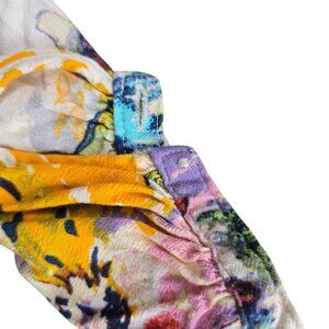 This Free People floral tunic blouse epitomizes casual elegance with its flowing silhouette and vibrant multicolor design. Crafted from soft rayon, it offers a breezy, lightweight feel perfect for layering or wearing solo. The long sleeves and button-down front enhance its versatility, suitable for transitional seasons.